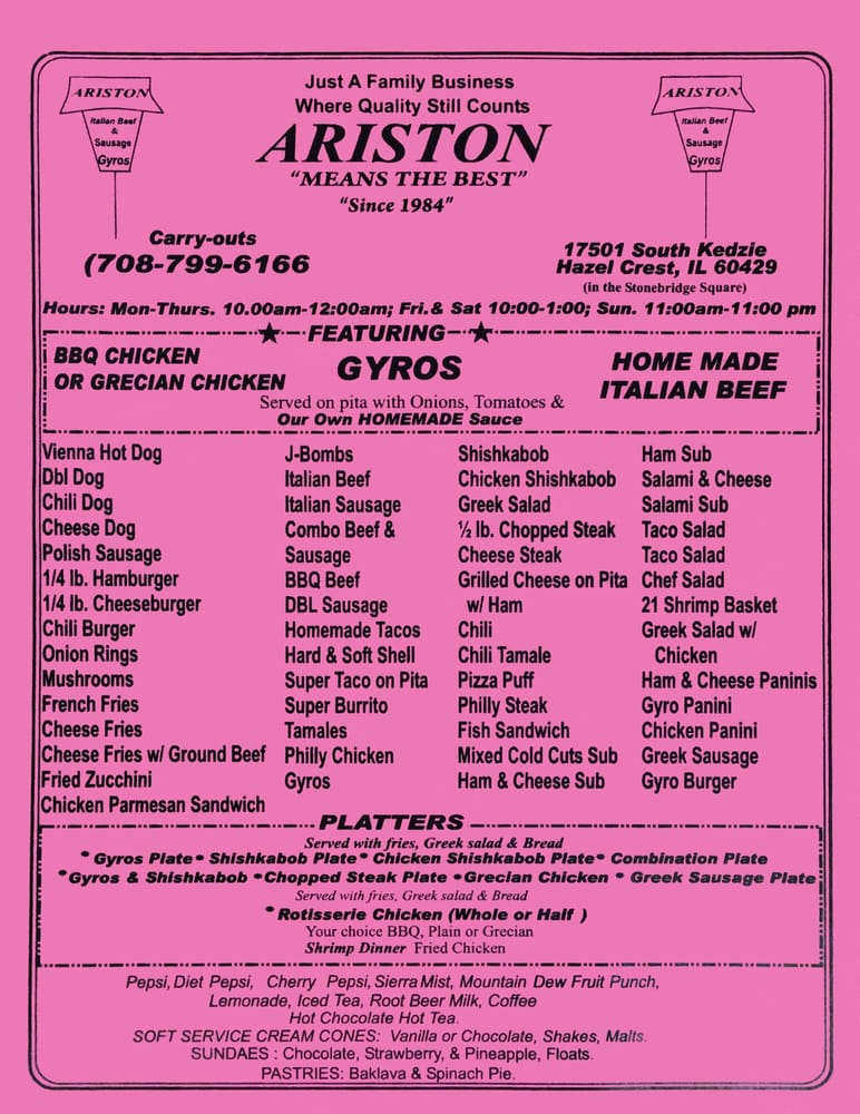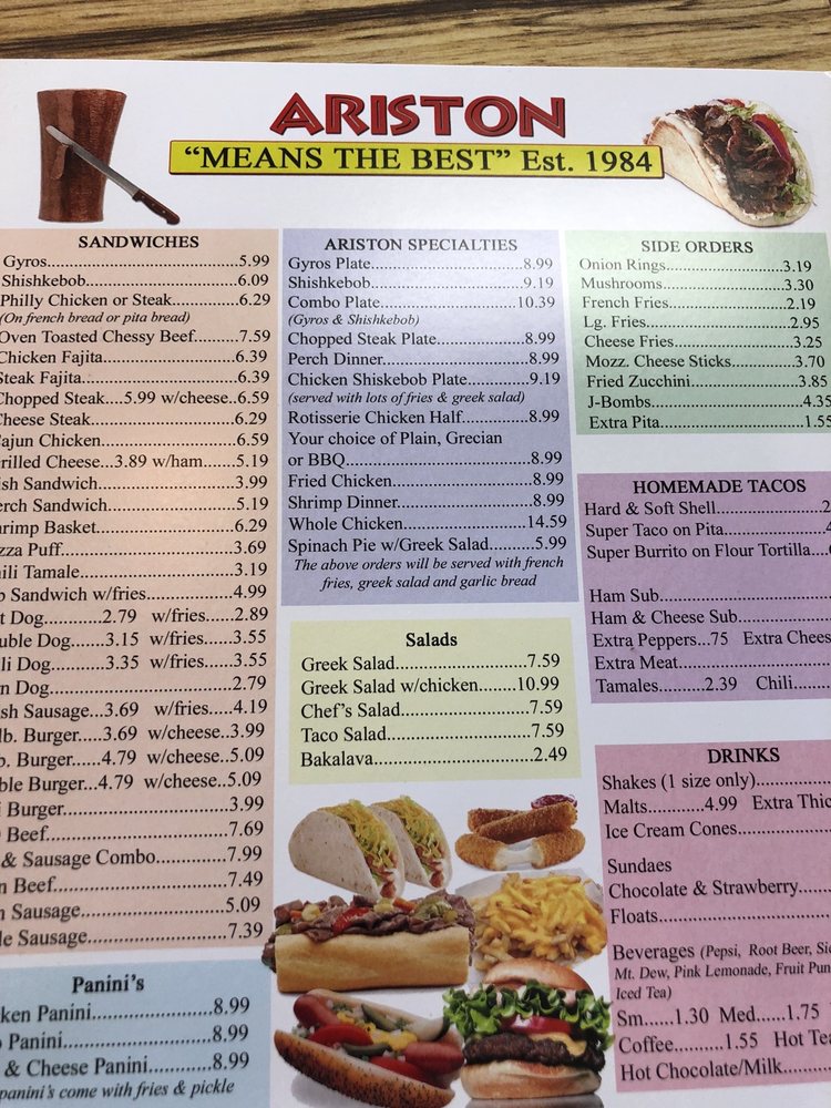 Ariston Restaurant, located at 17501 Kedzie Ave in Hazel Crest, IL, is a versatile dining establishment offering a variety of services. From delivery and takeout options to reservations and catering services, Ariston Restaurant aims to cater to all customer needs. The menu features limited vegetarian options, making it inclusive for all dietary preferences. This casual restaurant is great for groups, kids, and offers a welcoming environment for lunch or dinner. With amenities like outdoor seating, Wi-Fi, and gender-neutral restrooms, Ariston Restaurant prioritizes customer comfort. The availability of alcohol and convenient parking options add to the overall dining experience. Contact (708) 799-6166 to reserve a table or place an order. Ariston Restaurant stands out for its customer-centric approach and diverse menu options.
